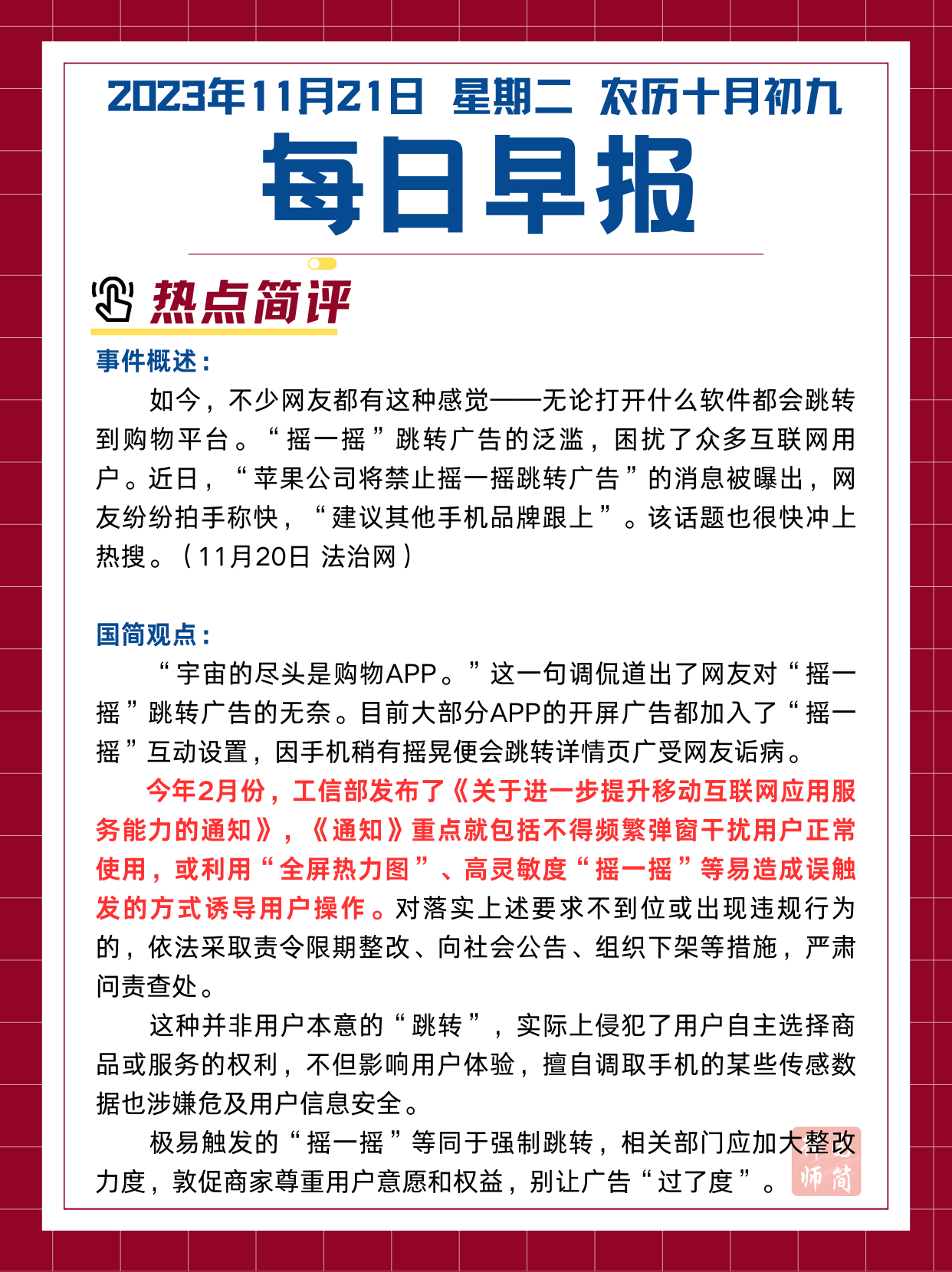 每日早报11.21|苹果公司将禁止摇一摇跳转