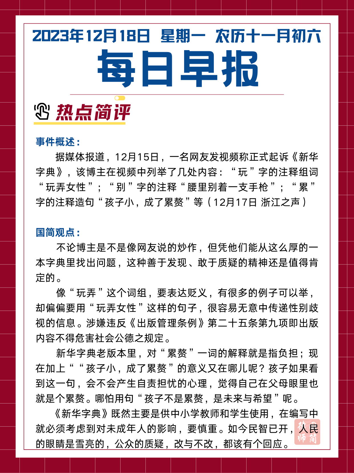 每日早报12.18|评新华字典被起诉